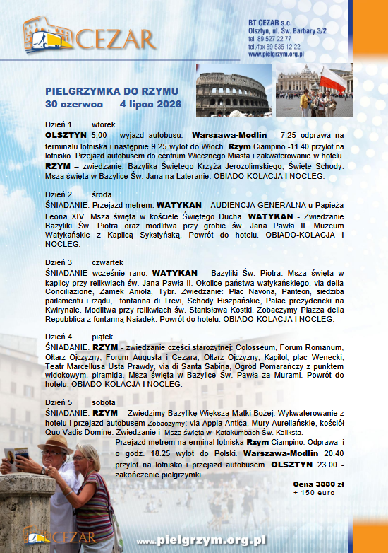 godz. 6:30, 8:00, 9:30, 11:00, 15:00 Msze św. z nauką ogólną
